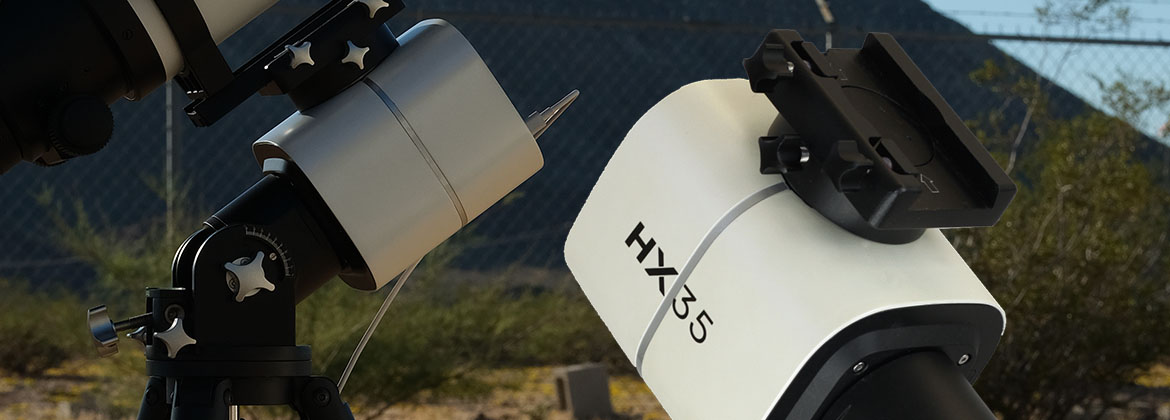 The HX35 comes with an EQ convertible mount capable of handling up to 28 lbs of instrument weight. The drive system has a Strain Wave gear drive + synchronous belt. The mount includes ports for expansion interface, ST4 and USB2.0 communication interface and it is ASCOM compatible.